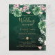 Modern trendy Emerald Green tropical island leaves and flowers invite with text template fields both sides. Coordinating items with this design can be found in the attached collection which includes wedding invitations, rsvp, save the dates, welcome sign, stickers, programs, menu, bridal shower invitations, rehearsal dinner, nuestra boda invites, budget invitations and more. This design theme is perfect for your destination, beach, tropical island, summer wedding. Design by registered brand LeahG.