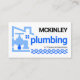 Overleaf, card details are over on the right. At the top is a blue leaking faucet logo you can use followed by your prestigious name and the contact details.