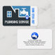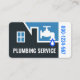 Cover features a white building frame with a leaking faucet design. A vertical white layer on the right houses your contact details with the business name "PLUMBING SERVICE" at the base; You can change the captions to the business name to suit your own service needs.