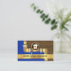 A gold water pipe from a brick wall leaks water into the blue layer of the card. Riding on the gold pipe is a gold "home faucet" logo you can use. Near the card's base, in a faux gold stripe, is the business name and a slogan caption. ; Change the slogan caption to suit your service needs.