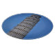 This captivating photograph showcases the iconic Leaning Tower of Pisa standing elegantly against a deep blue twilight sky in Pisa. The historic marble tower, famous for its unmistakable tilt, is beautifully illuminated, highlighting its intricate Romanesque arches and layered columns.