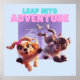 Dive headfirst into excitement with "Leap Into Adventure," a dynamic graphic from "Gracie & Pedro: Pets to the Rescue!" This vibrant image features the intrepid duo, Gracie and Pedro, in mid-air, exuding enthusiasm and bravery. With a backdrop highlighted by a soaring plane and a hint of whimsical clouds, this artwork perfectly captures the spirit of their high-flying escapades. The bold, playful text enhances the sense of motion and adventure, making this an ideal promotional piece for the movie, appealing especially to young audiences and families. Perfect for posters, digital banners, or social media, it embodies the fun and adventure that the film promises.