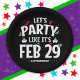 A fun & unique leap year birthday design for a leap day baby birthday boy or girl lucky enough to have a Feb 29th leap day birthday! Celebrate your unbirthday this non-leap year & party like it's leap day! Features "Party Like It's Feb 29th" funny leap day birthday meme & leap year birthday hashtag w/ smiling frog wearing a crown in a colourful birthday party theme graphic. Fun for leaplings of all ages!