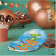Green frog jumping over orange 29 number text in flowers and grass for Leap Year Birthday Party