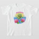 Leaping Frog girl's custom T shirt birthday. Why not customize this T shirt, add whatever name or message you wish. Makes the perfect birthday gift or summer treat. One of my favorite illustrations. This little leaping frog loves birthdays and parties so much that he's jumping right out of the picture. Perfect for any kid's party ware, you'll find her on cards, invites and plates and various kids apparel. All with customizable ages and names for the perfect tailored party.