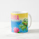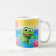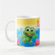Leaping frog party custom NAME ceramic mug. Leaping frog party custom ceramic mug gift. One of my favorite illustrations. This little leaping frog loves birthdays and parties so much that he's jumping right out of the picture. Perfect for any kid's party ware, you'll find her on cards, invites and plates and various kids apparel. All with customizable ages and names for the perfect tailored party.