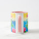 Leaping frog party custom NAME ceramic combo pink mug. Leaping frog party custom ceramic mug gift. One of my favorite illustrations. This little leaping frog loves birthdays and parties so much that he's jumping right out of the picture. Perfect for any kid's party ware, you'll find her on cards, invites and plates and various kids apparel. All with customizable ages and names for the perfect tailored party.