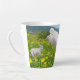 This gorgeous latte mug features my design of Spring time Lambs joyfully playing and leaping amongst the buttercups in a wild flower meadow. A perfect gift for Easter, filled with chocolate eggs or for any time of the year to bring a touch of Spring into the room.