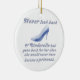 Never look back. If Cinderella had gone back for her shoe, she would never have become a princess. Live every day to the fullest, and never look back; no matter how bad something may appear, there is no telling what good may come of it. You only live once, don't waste time on regrets! A lovely design with glass-like writing, and of course, the iconic Cinderella's glass slipper.