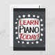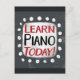 "Learn Piano Today" is a cute text design in grey with black and red text. It sits on a white accent shape and cute white polka dots surrounding it.