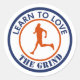 The secret to running is to learn to love the grind. This design is a circle with a runner inside.