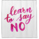 Learn to say no inspirational quote. Hand-written pink inspirational quote on shower curtains.