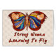 Celebrate the growth of your emerging power with this multi-coloured butterfly with the body of a woman in the centre and the words "Strong woman learning to fly."