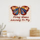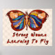 Celebrate the growth of your emerging power with this multi-coloured butterfly with the body of a woman in the centre and the words "Strong woman learning to fly."