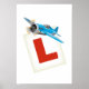 Learning to fly cute cartoon blue plane with a L learners plate.