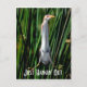 This postcard depicts a Least Bittern, a secretive shy bird of swamplands, straddling some reeds. The words say "Just Hanging Out"