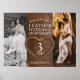 Leather look 3rd wedding anniversary party poster. Brown leather effect heart shape printed graphics on 3rd wedding anniversary poster. Customize with your wedding anniversary party names, date and two photos of now and then. 3rd Anniversary is associated with leather and the heart on this design symbolizes the love. Other matching items are available. Original graphics and design by Sarah Trett for www.mylittleeden.com and www.mylittleedenweddings.com on zazzle