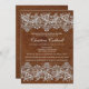 © Socialite Designs. Our unique invitation has a leather- and lace-look design, perfect for any country or rustic bridal shower event. A classy combination of masculine and feminine design elements for a romantic combination. PLEASE NOTE THAT THE LACE AND LEATHER ARE IMAGES THAT ARE PRINTED ON TO THE INVITATION AND ARE NOT REAL. If you require HELP with customising or need additional wedding products with this design, please contact Socialite Designs.