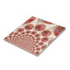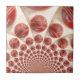 The artwork showcases a central cluster of red cricket balls that radiates outwards in a concentric, spiralling fashion. The balls vary in size, suggesting depth and perspective. The background is a soft, textured off-white, providing a subtle contrast that highlights the rich red of the cricket balls. The overall effect is visually engaging and creates a sense of organised yet dynamic movement.