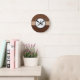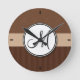 Leather Brown Damask with Stripes and Monogram Round Clock
