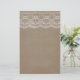 Beautiful shabby chic wedding design with faux beige leather background and decorative lace accent across the top. Wonderful shabby chic design with a combination of masculine and feminine. Please know that the design does not include real leather or lace, just photo representations. The colour of the leather and lace can be customised to match your wedding colour theme. Contact me at mshake5918@yahoo.com for custom colour designs at no extra charge. This custom design also comes on many other ready to customise template products and can be placed on many other Zazzle product you might like. Follow the link below to see the rest of the Leather & Lace Wedding product collection.