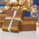 Leather Luxe: Stitched Brown Elegance Wrapping Paper