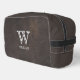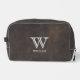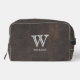 Leather Texture Black Monogram Name Dopp Kit