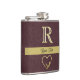 The flask itself is fine. It’s a cheap flask, obviously bought in bulk, however am prepared to overlook that. Given that it is a personalized item, I would have liked to have seen gift boxing instead of the generic packaging. Terrible printing, and/or quality. It’s a cheap, tacky vinyl. It is not cut straight and is also applied in a way that it is overhanging the bottom, causing the glue to catch on items and it will eventually roll and tear, damaging the wrap.
