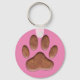 Leather Texture Dog Paw Print On Pink Keychain