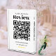 Simple Leave a Review QR Code Personalised Social Media Photo Block. A business sign with custom QR Code. The QR code on the sign allows customers to leave a review on the page you can add. Black and White simple Leave Us a Review Sign.