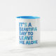 Great product, good delivery time, and an awesome idea for a gift! It was even better than I could have imagined, the customisation is incredible. The colour is perfect, it's dishwashable and microwaveable, the text print on the mug looks exactly like I wanted it to look and best of all, it's a large sized mug that you can drink plenty of coffee or whatever you want! I gifted this to my father and he loves it. He drinks coffee with that mug everyday :) I recommend.