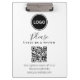 Modern, elegant and simple business card to invite customers to leave you a review using a QR code to direct them to your social media, or website this vertical business card features a custom business logo and additional text for tagline, or contact information. The perfect strategy to build an audience, increase followers, grow your customer base and create community to generate quality advertisement.
