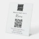 Leave us a review QR code Modern Pedestal Sign. Modern, elegant and simple business card to invite customers to leave you a review using a QR code to direct them to your social media, or website this vertical business card features a custom business logo and additional text for tagline, or contact information. The perfect strategy to build an audience, increase followers, grow your customer base and create community to generate quality advertisement.