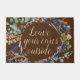 This beautiful brown doormat features a circular wreath of richly coloured foliage and herbs, creating an inviting and natural touch for your home. In the centre, a gorgeous script reads "Leave Your Cares Outside," welcoming guests with warmth and charm. This doormat not only adds beauty to your entryway but also serves as a thoughtful reminder to leave the stresses of the day behind.