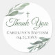 Baptism stickers featuring a green and grey colour theme and watercolor greenery.