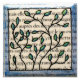Art by Marta Harvey. This piece was created by adding French text to a tile, then drawing and painting leaves and a border with ink.