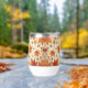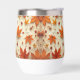 A water bottle decorated to remind you of autumn with a deciduous pattern design