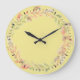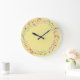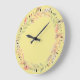 Pretty wall clock features yellow background with watercolor leaves wreath in a variety of colours