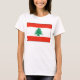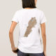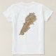 The front of this t-shirt boldly displays the Lebanese flag with its distinctive green cedar tree in a white band with red bands above and below. This is matched at the back by an attractive map of Lebanon.