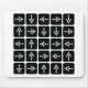A square design made up of 25 smaller round cornered squares each with an LED style arrow pointing in different directions creating and interesting abstract design.