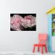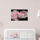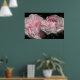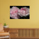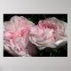 Leda is an antique Damask rose dating from the early 1800's. The petals are many and vary in colour from blossom to blossom. Creamy pink and often tinged with darker pink, she is also called the Autumn Damask or Painted Damask. This poster displays two blushing pink scented blossoms.