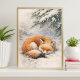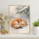 leeping fox | winter fox illustration | snowy fox poster