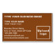 Left aligned style brown magnetic business card for your customers or clients to easily find your business address and contact information. Customise it by uploading your business logo, typing your business name, your name, your title, address, phone number, e-mail and website or social media page. Magnetic business card that you can also use to build brand name awareness. Please check the appearance of the front and back sides after uploading logo and typing texts. If the appearance is pleasing to you, you can place your order now. If you need to resize or reposition the logo and texts, please adjust in the design tool. You can also change the background colour, font colour and font style in the design tool.