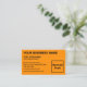 Left aligned style orange business card for your customers or clients to easily find your business address and contact information. Customise it by uploading your business logo, typing your business name, your name, your title, address, phone number, e-mail and website or social media page. Please check the appearance of the front and back sides after uploading logo and typing texts. If the appearance is pleasing to you, you can place your order now. If you need to resize or reposition the logo and texts, please adjust in the design tool. You can also change the background colour, font colour and font style in the design tool.