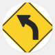 Left Curve Ahead Highway Sign Classic Round Sticker