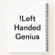 On the front of the notebook is text saying, "See other side". On the back is, "! Left Handed Genius." It's a fun joke that will leave people laughing... and maybe confirming your genius by getting them to fall for the joke.