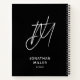 Modern left-handed notebook features a stylish monogram in black and white. Monogram initials are layered to create a unique design for you. A trendy modern notebook for home, school or office. The spiral is on the right for left-handed convenience.