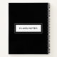 Modern left handed notebook features a minimal design with class notes or subject presented in a black and white frame. Simple, stylish, elegant, and minimalist design that you can personalise with your name in simple classic typography lettering. The spiral is on the right for left-handed convenience.