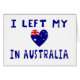 Image shows heart-shaped Australian Flag and reads "I left my heart in Australia". Great for travelers, ex-pats, or anyone who wants to share their pride in their Aussie ancestry, heritage and culture. Great for r emembering a vacation or holiday.