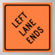 International style road and highway construction zone warning sign advising that the left lane will end.